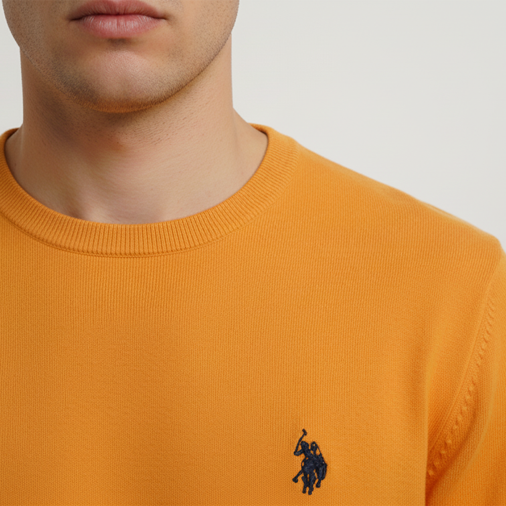 Maglione uomo girocollo senape U.S. Polo Assn. con logo ricamato